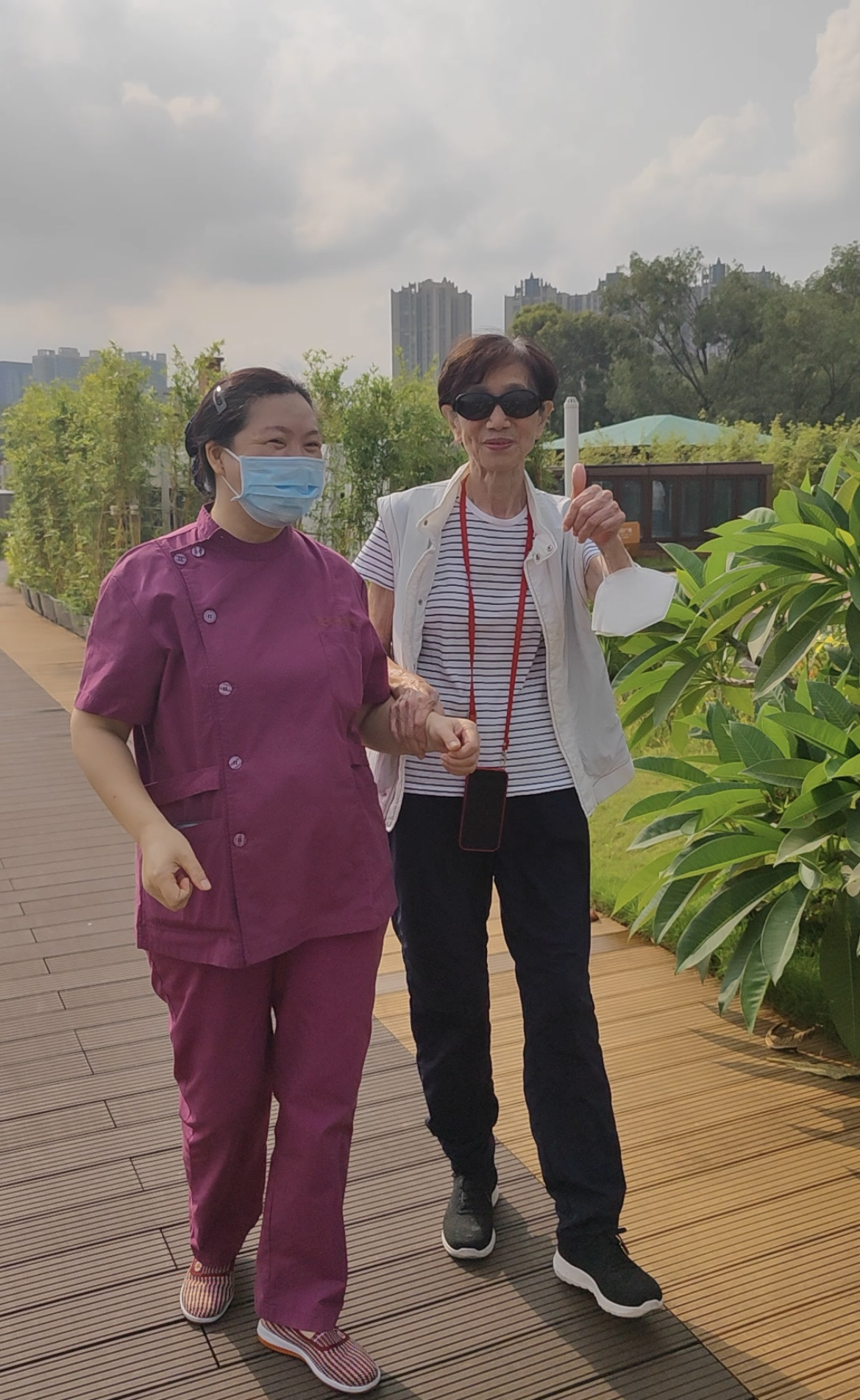 即便历经伤病与岁月的考验,王奶奶依旧保持着赛场拼搏时的乐观坚韧,积极投入每一次康复训练。“刚来时连翻身都难,现在能自己绕花园走两圈,生活基本自理啦!”王奶奶笑着展示步态。很难想象这是她髋关节术后不到一年、入住仅3个月的蝶变。